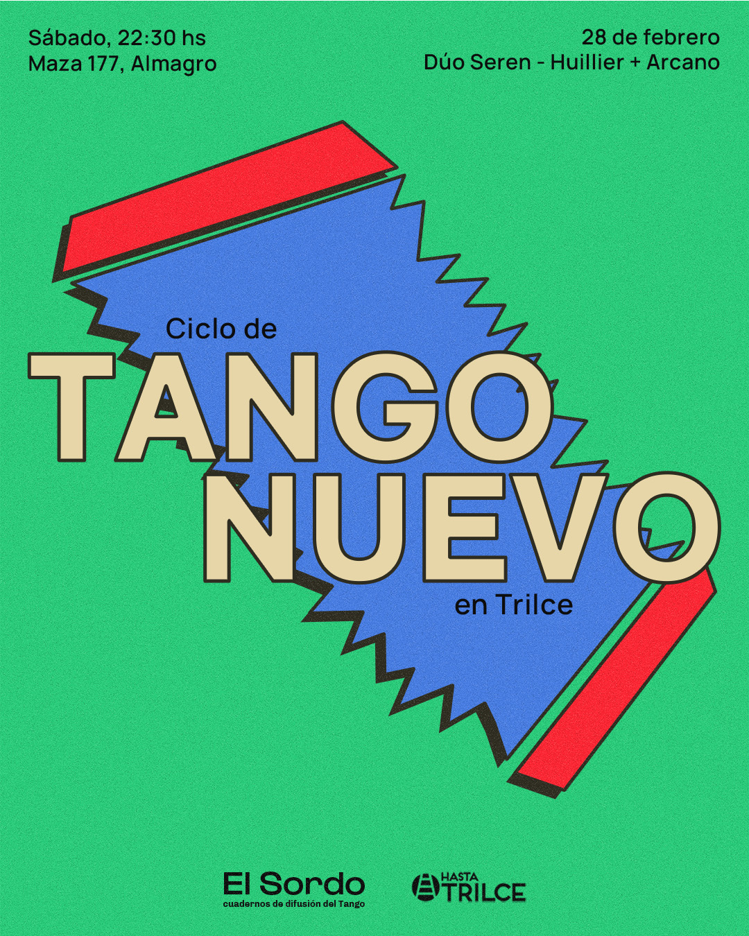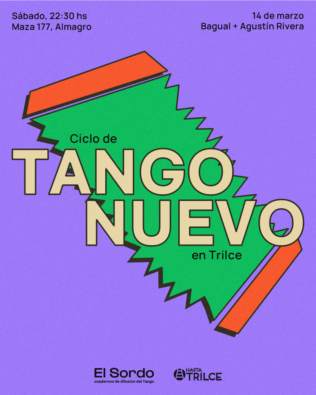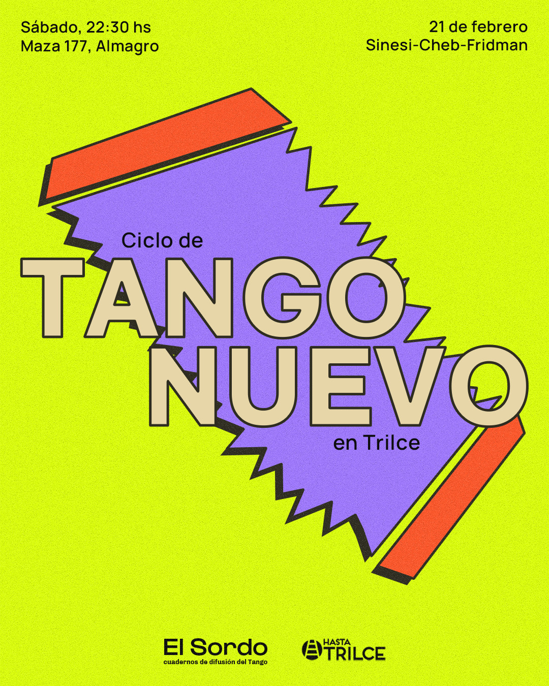 Diseño de afiches para el ciclo de tango nuevo que organiza la revista El Sordo en Hasta Trilce.